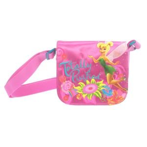 Petit sac à bandoulière Fée Clochette roseModèle 100% officiel Disney Dimensions : 14 x 15 cm Poche principale avec fermeture velcro Sangle réglable