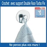 | ✚✚✚ Crochet mural avec support double face Turbo Fix Prise sûre grâce à la technique de collage Turbo-FIX. Décoller le film de protection et fixer. Montage à la fois rapide et simple, sans outil et sans percer. Les conseils de Tendance Maison : Maintenez la pression pendant 1 minute pour optimiser l'adhérence. Crochet à support double face haute adhérence. Diam 6 cm Réf. 18767100