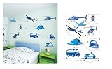 Amovible décorations pour les murs Autocollant Autocollants Cartoon voiture avion hélicoptère avec un MicroDeal® Piece chiffon de nettoyage marques par ordre