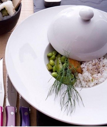 Assiette de présentation gusto avec cloche en porcelaine
